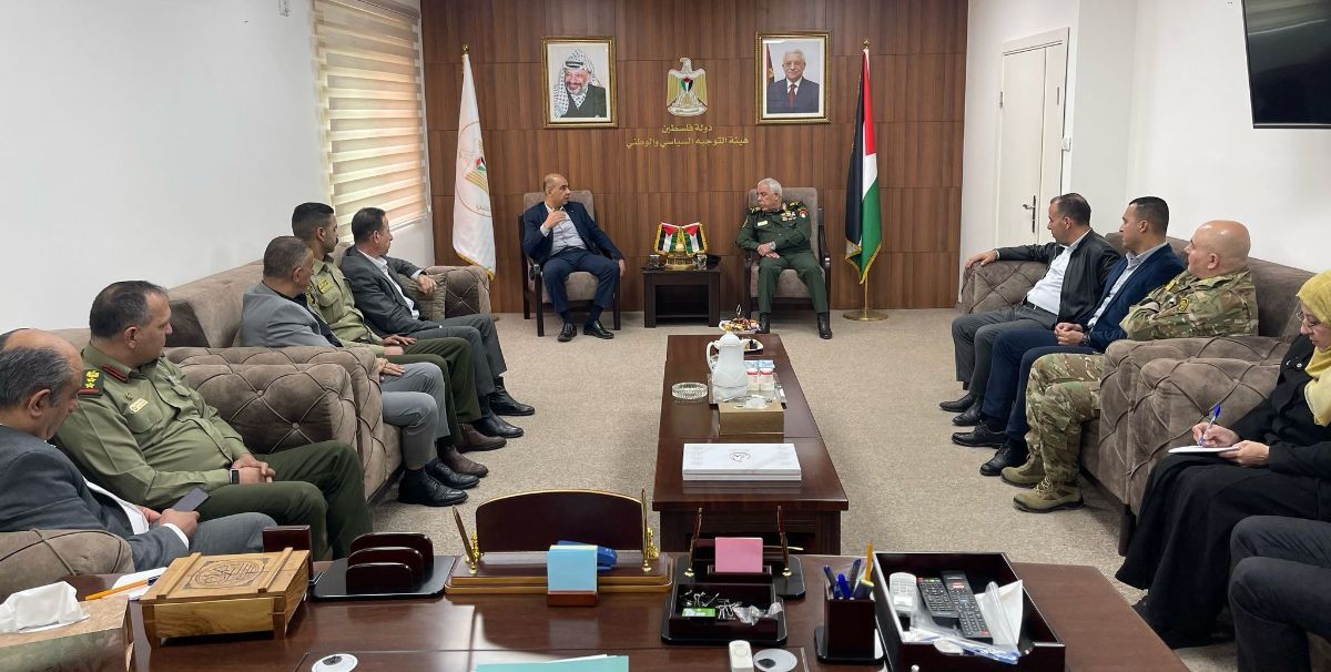 مشددا على ضرورة تظافر الجهود والطاقات لرفعة مؤسستنا الأمنية والعسكرية وكذلك المدنية، وإبراز قيمة المواطنة وما تجسده من انتماء وولاء للوطن، ومن هنا يأتي دور هيئة التوجيه السياسي والوطني في مأسسة العمل بإطار العمل الجماعي بين الهيئة وشركائها من المؤسسة الأمنية والمدنية وفق نظرة مبنية على الشراكة والتكامل مع المسؤولية الوطنية لتسهم في بناء قواعد صلبة من الأمن، وتشكل مرتكزاً أساسياً في بناء المجتمع وتنميته، وصولاً الى الدولة المستقلة وعاصمتها القدس، وهو ما يتطلب منا جميعاً الارتقاء الى مستوى المسؤولية التي تقتضيها مصلحة شعبنا وبالتالي القوة والقدرة على مواجهة التحديات التي يفرضها الاحتلال ومخططاته بتعزيز الوحدة الوطنية الأمر الذي يستدعي شحذ الهمم نحو المصلحة العامة وتحقيق التماسك الاجتماعي عماد المجتمع وسبيله للنهوض بواقعه .