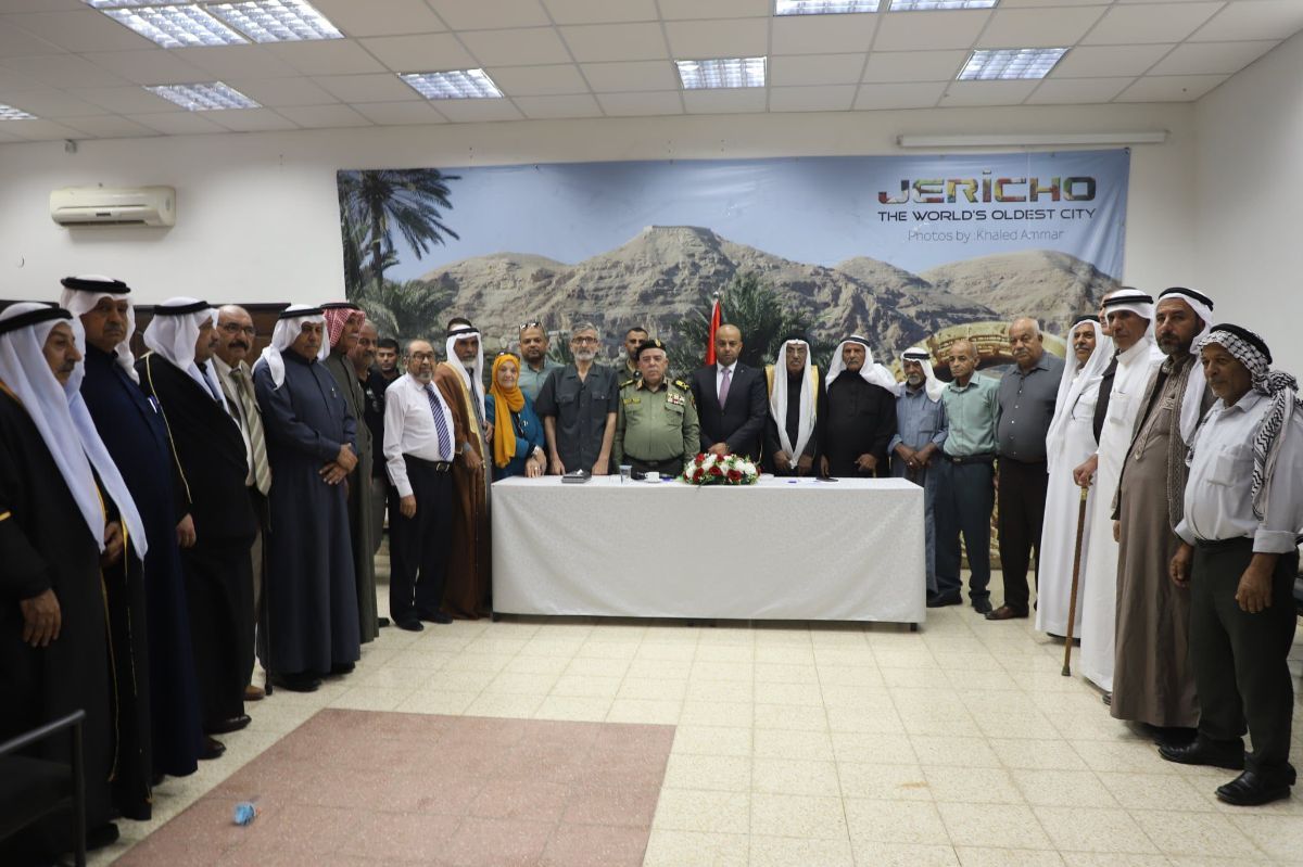 وفي إطار ترسيخ السلم الأهلي وتعزيز التماسك المجتمعي، التقى اللواء رجب في دار المحافظة، بالفعاليات الرسمية والتنظيمية واعضاء من المجلس الثوري لحركة "فتح" ورؤساء مجالس بلدية وقروية واللجان الشعبية في المخيمات وعدد من المتقاعدين العسكريين والمدنيين ومدراء المؤسسات المدينة و العسكرية وعدد من وجهاء وشيوخ العشائر والقبائل، ورجال الدين، الاسلامي و المسيحي وفصائل منظمة التحرير، و الغرفة التجارية، و القطاع الزراعي وممثلين عن الفعاليات الرسمية و الشعبية، حيث شدد المفوض السياسي العام على أن السلم الأهلي هو ركيزة أساسية لحماية المشروع الوطني، محذرا من محاولات الاحتلال المتكررة لضرب وحدة النسيج المجتمعي الفلسطيني. ودعا إلى تفعيل لجان الحماية الشعبية ضمن إطار وطني منضبط لمواجهة اعتداءات المستوطنين، مشيدا بدور الفعاليات الاجتماعية والنقابات في تعزيز الصمود الشعبي.
