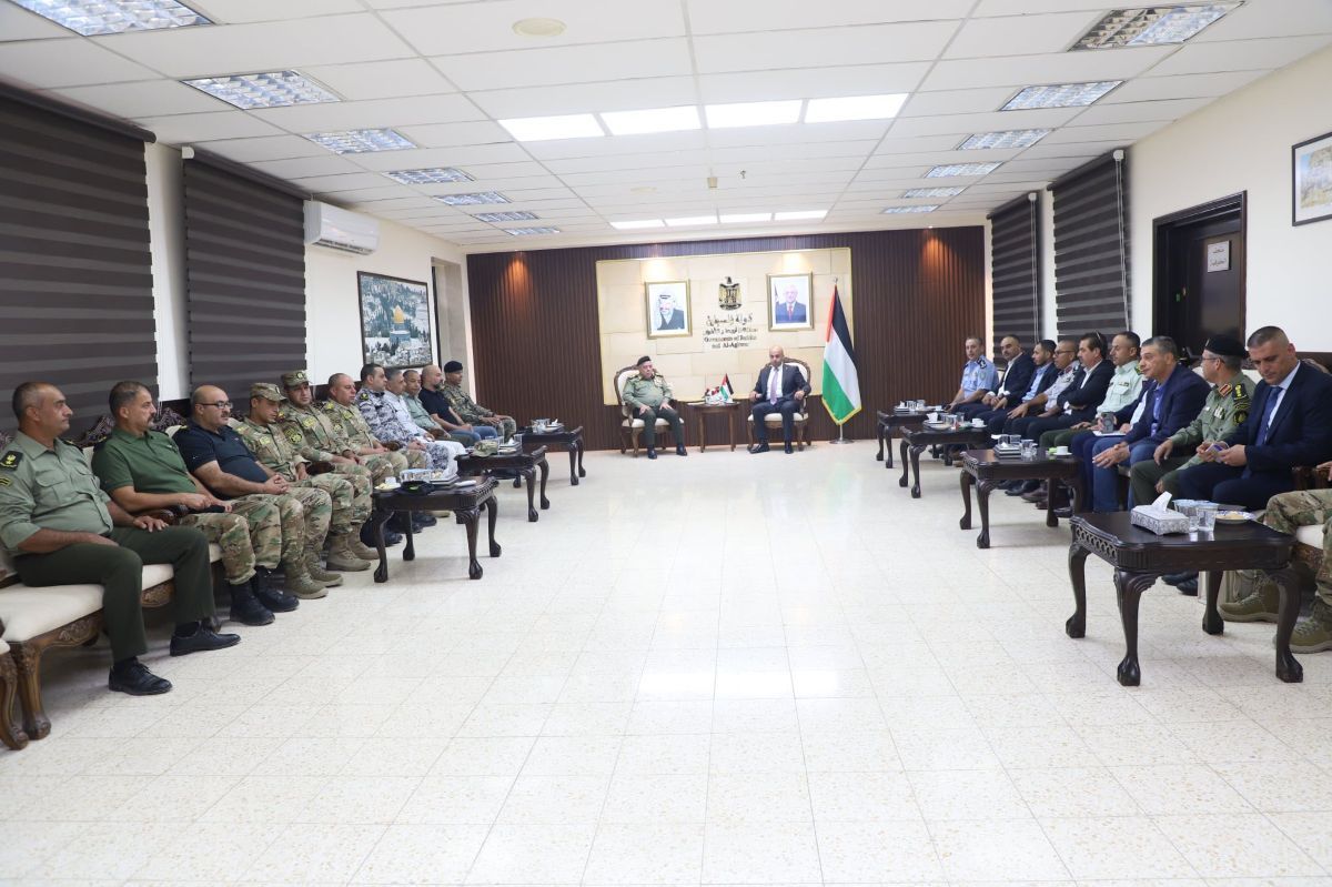 أريحا – استقبل محافظ محافظة أريحا والأغوار، الدكتور حسين حمايل، وقادة الأجهزة الامنية في المحافظة سيادة اللواء أنور رجب، المفوض السياسي العام الناطق الرسمي لقوى الأمن الفلسطيني، حيث رحب عطوفة المحافظ، بالمفوض السياسي العام، مؤكداً أن أبناء المؤسسة الأمنية يواصلون أداء واجبهم الوطني رغم التحديات الجسيمة التي تفرضها ممارسات الاحتلال، مشددا على أهمية تكامل الجهود الرسمية والشعبية لحماية المشروع الوطني، ومثمنا دور هيئة التوجيه السياسي في تعزيز الوعي والانتماء الوطني.
